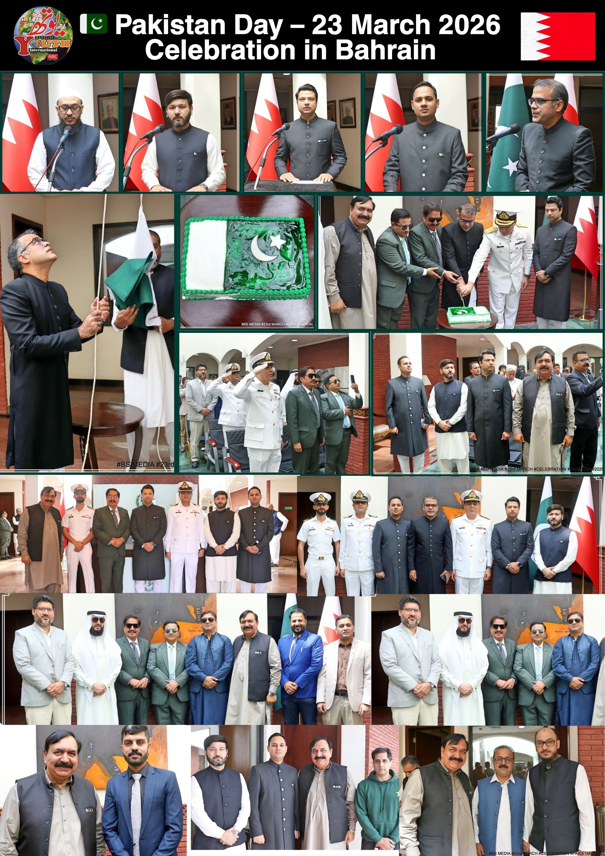 A magnificent, dignified, and memorable event was organized at the Pakistan Embassy Bahrain on the occasion of 23 March 2026, reflecting the true spirit of patriotism, determination, and courage. A graceful flag hoisting ceremony was held, attended by community members, distinguished guests, and embassy officials.